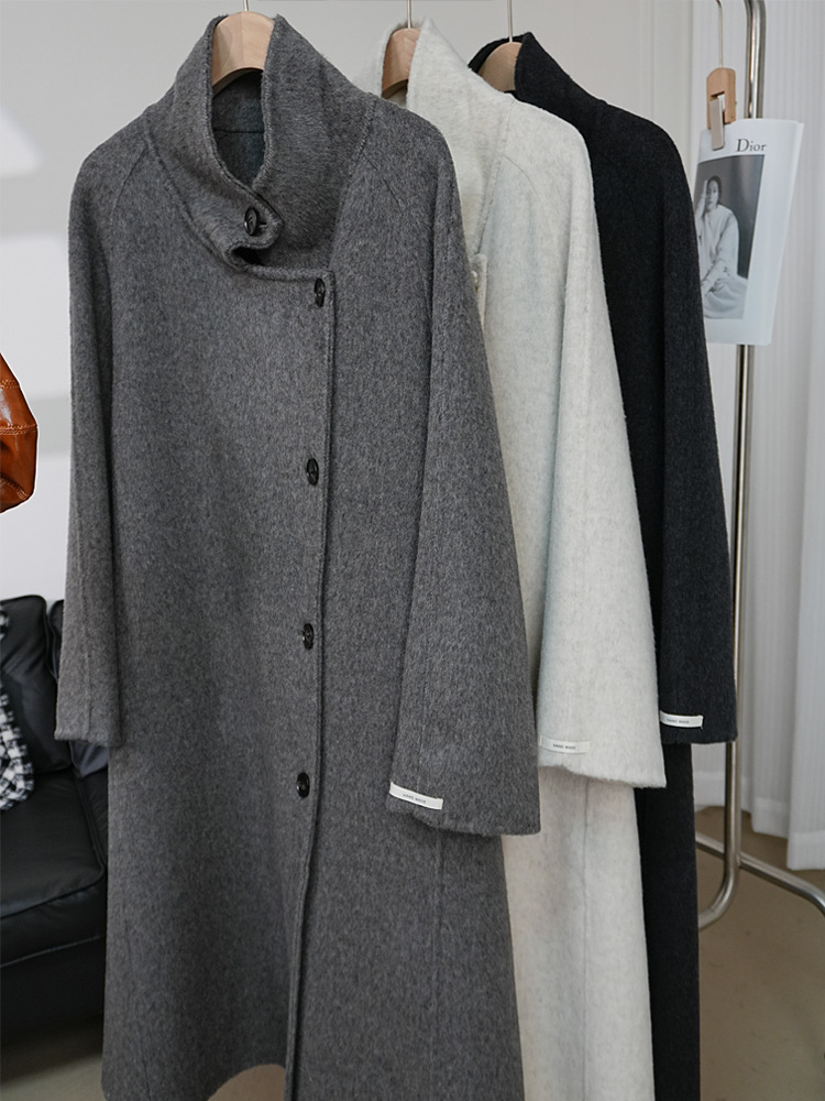 Autumn and winter new double-faced velvet coat, medium-length stand-up collar wool double-breasted coat for women