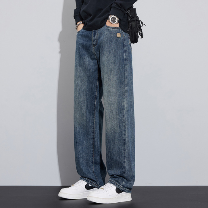 Loose straight plus velvet denim trousers trendy and versatile American retro casual trousers